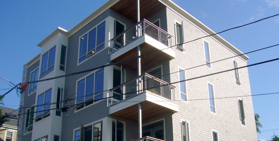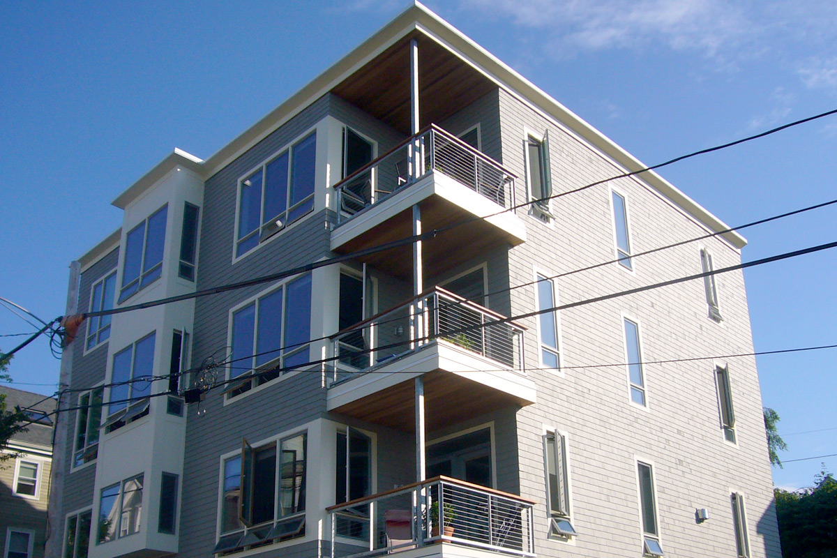 The real story behind this project is the collaboration among two of my regular co-conspirators and myself to build a residence and community for us to live in. I joined with David Lloyd, the architect for many of my projects and John Ryan of Wright-Ryan Construction, my contractor of choice, to build a modern take on the classic triple decker. We all had interest in living on Munjoy Hill. When I identified a small lot in a great location with some great views our families went into action to combine our skills to plan and build a wonderful residence that we all are enjoying tremendously. Not only have we created a great building, we now have a small community of like-minded people, a great bonus.